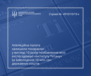 Апеляційна палата Вищого антикорупційного суду 22 вересня 2022 року розглянула апеляційні скарги прокурора та захисників обвинуваченого — колишнього посадовця ДП «ДНДП Інститут Титану» на вирок ВАКС від 20 квітня 2022 року.