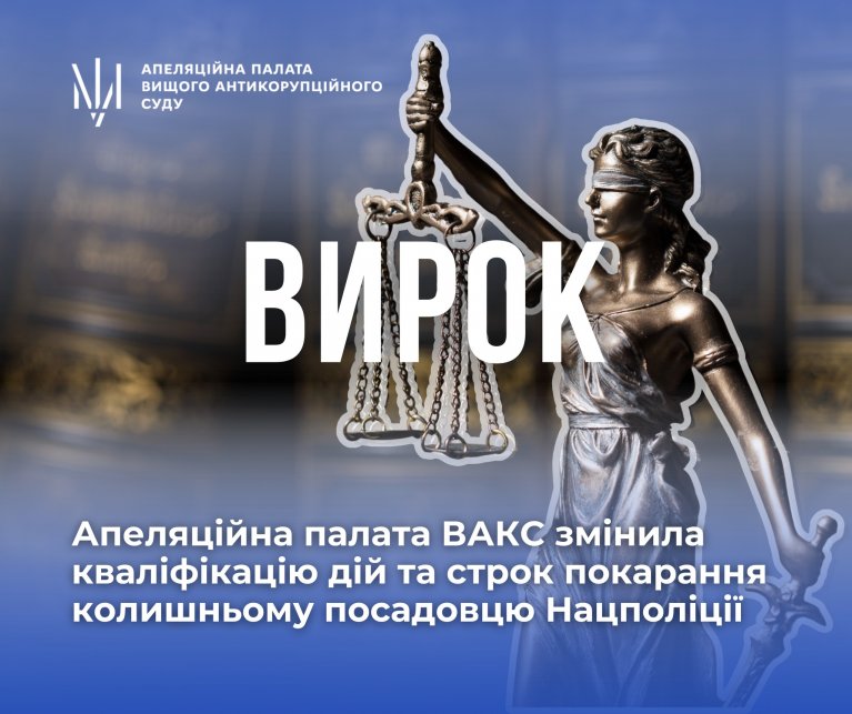 За результатами розгляду колегія суддів Апеляційної палати ВАКС частково задовольнила апеляційну скаргу захисника та змінила вирок ВАКС у частині правової кваліфікації дій обвинуваченого, а також строку призначеного покарання.