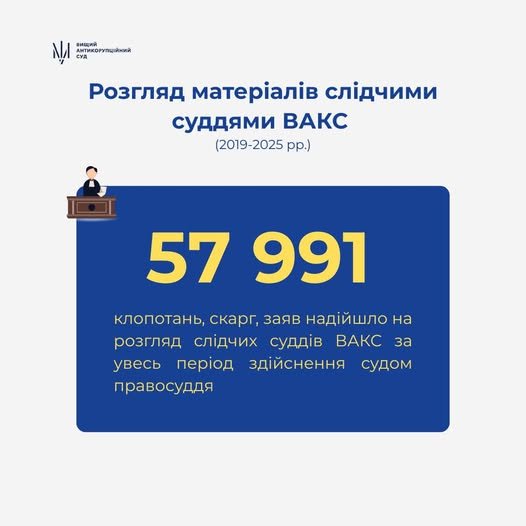 Біля 58 тисяч клопотань, скарг та заяв надійшло на розгляд слідчим суддям ВАКС за майже 6 років роботи установи. Слідчі судді опрацювали понад 57 600 із них за цей же період, що свідчить про високу інтенсивність та якість роботи, попри додаткові навантаження.