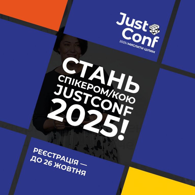 У Києві, 4 грудня 2025 року, відбудеться конференція JustConf 2025: Мислити цілим! Подія розпочнеться о 12:30. Наразі до 26 жовтня 2025 року триває реєстрація спікерів на цей захід за посиланням: https://forms.gle/JnCEQ43udDMHP2hXA