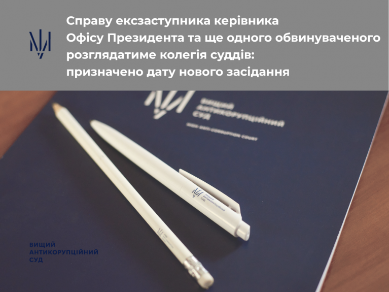 Following the automated case distribution in the criminal proceedings in regards the former Deputy Head of the Office of the President of Ukraine (2019–2024) and another defendant, the panel of judges of the HACC has been determined.